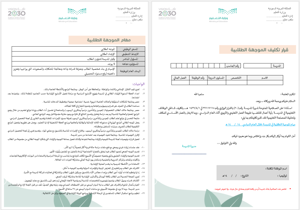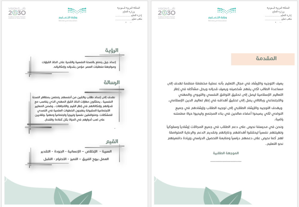 - خطة الموجهة الطلابية ( تضع الموجهة خطتها حسب خطة المنطقة التابعة لها )