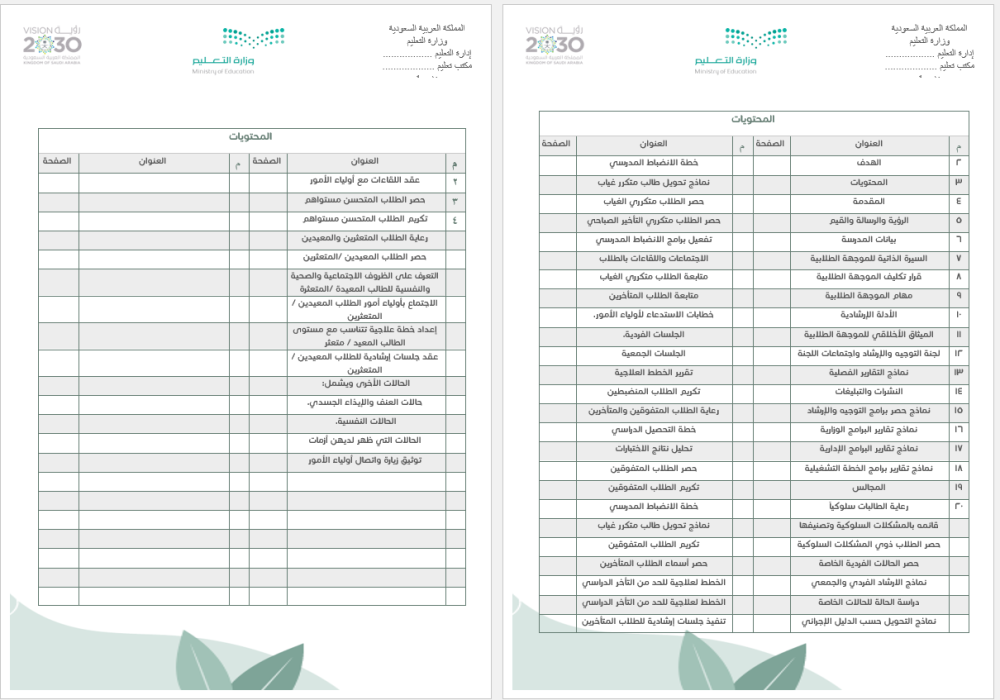 محتويات ملف التوجيه والإرشاد الطلابي :